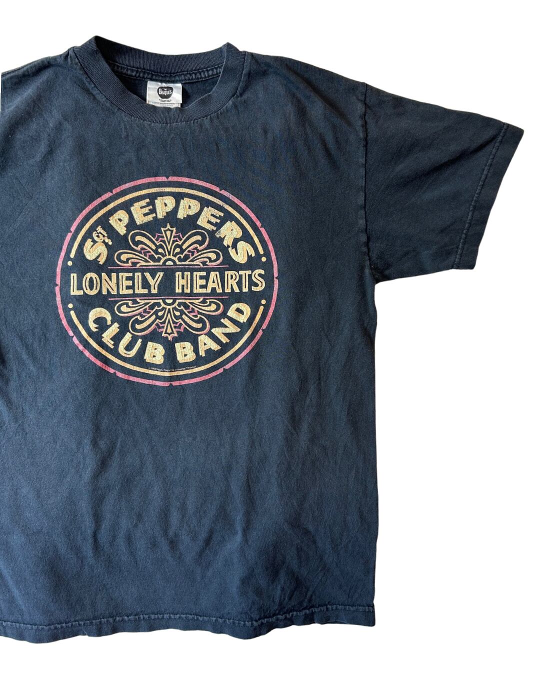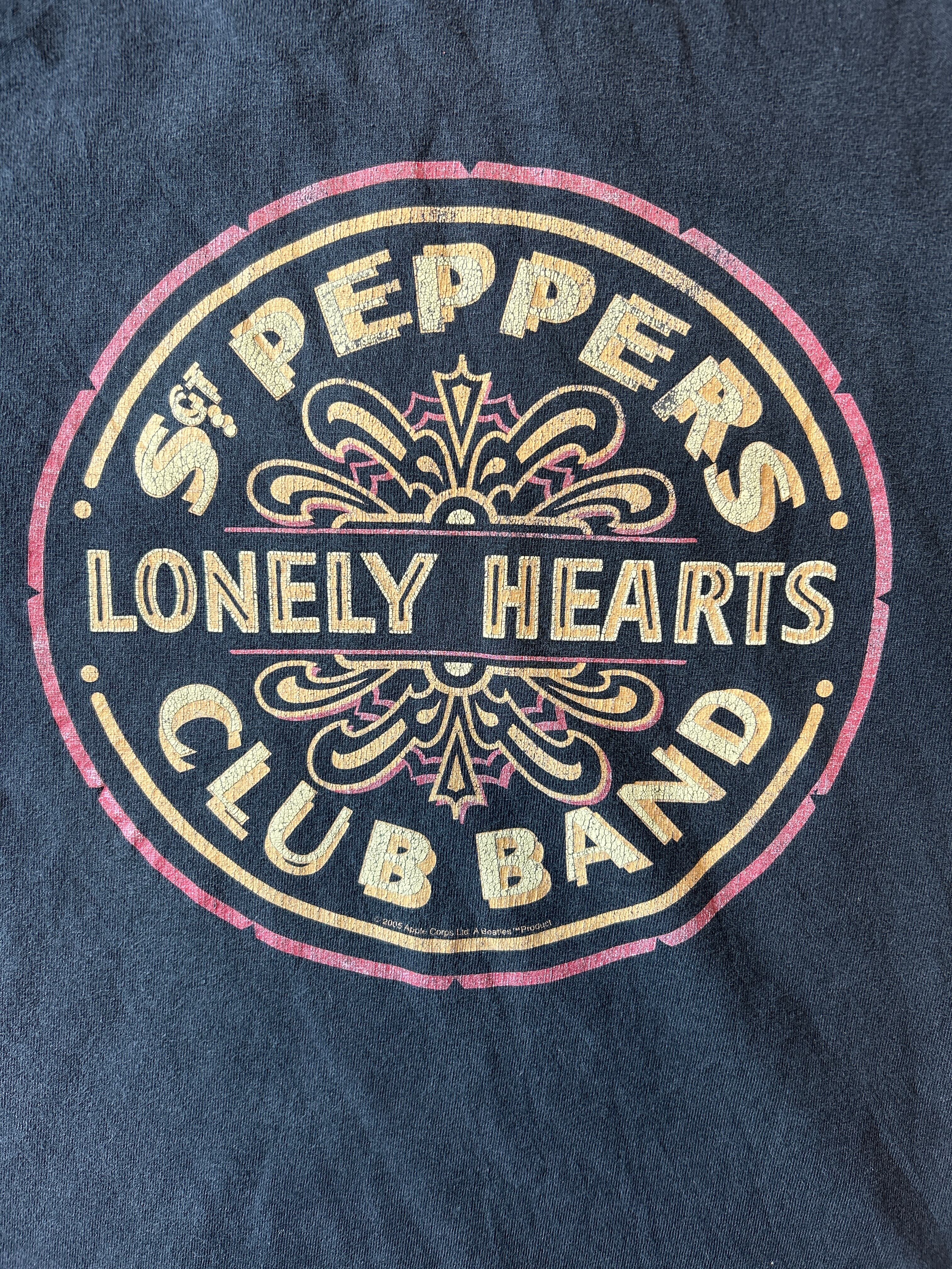 『サージェント・ペパーズ・ロンリー・ハーツ・クラブ・バンド』(Sgt. Pepper's Lonely Hearts Club Band)は、イギリスにおいて1967年5月26日に発売されたビートルズの8作目のイギリス盤公式オリジナル・アルバム。そのロゴが入ったTシャツとなります。