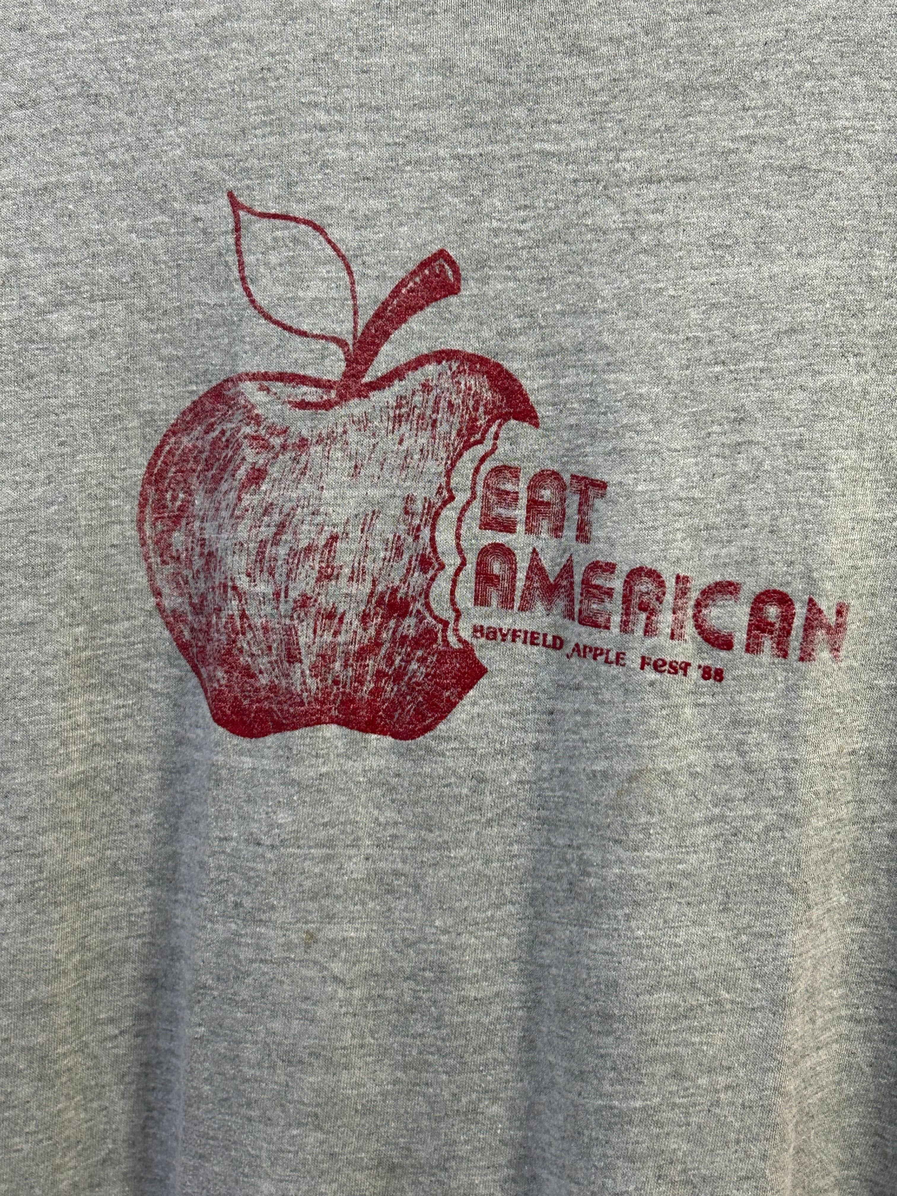 80年代のヘインズのTシャツとなります。1988年に開催されたベイフィールドアップルフェスティバルのプリントで秋の収穫とベイフィールドの農業の歴史を祝うイベントとなります。